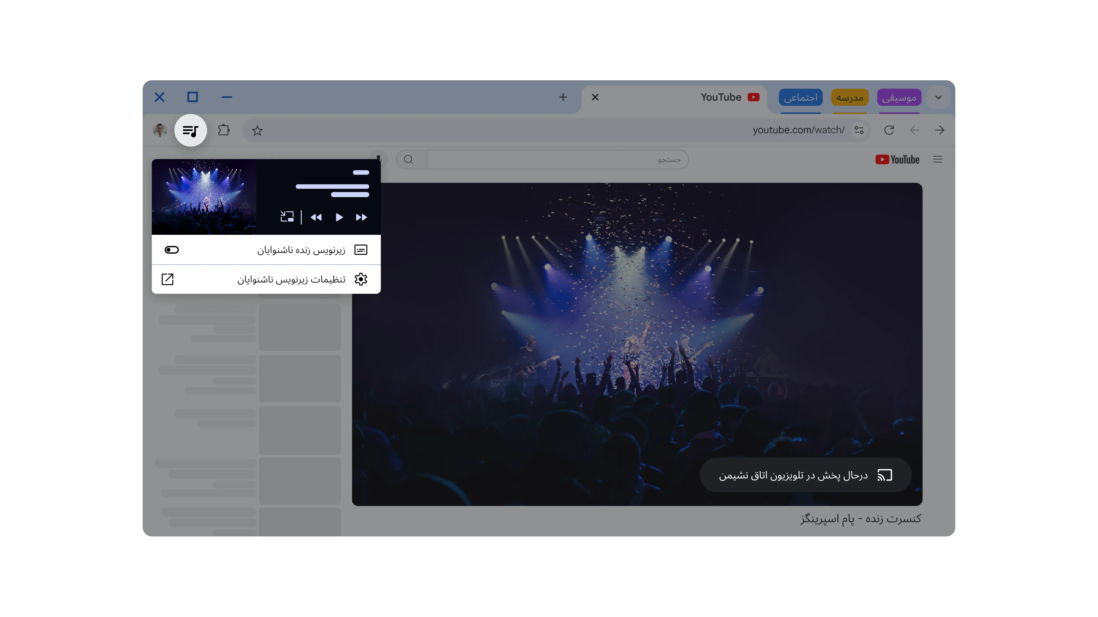 ویدیویی از یک کنسرت که در حالت تصویردرتصویر قرار دارد.