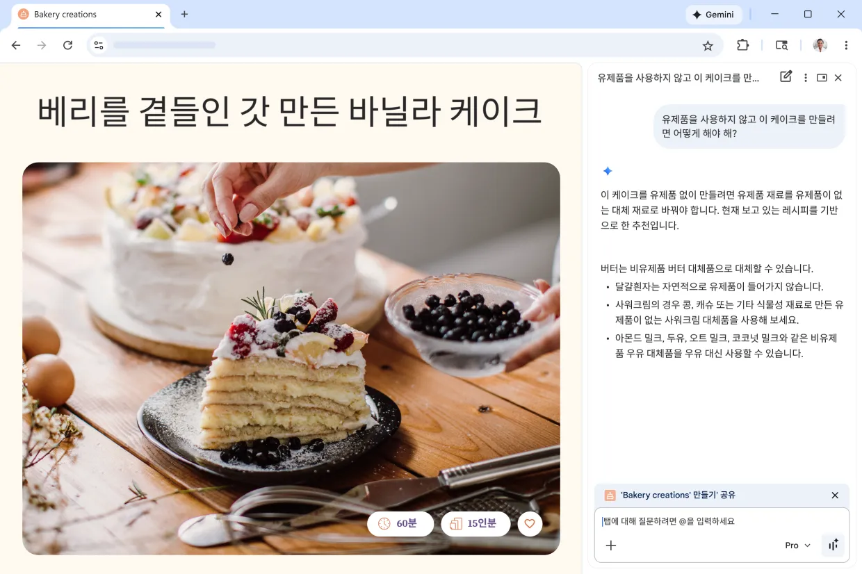 Chrome의 Gemini에게 도움을